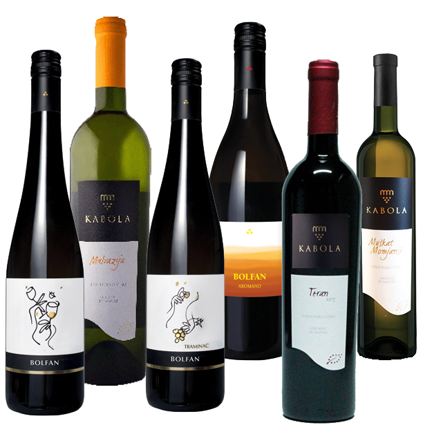 • 1x Kabola Malvazija, droog, zacht en fris met plezierige mineralen. Deze wijn is medium-bodied, evenwichtig en harmonieus.